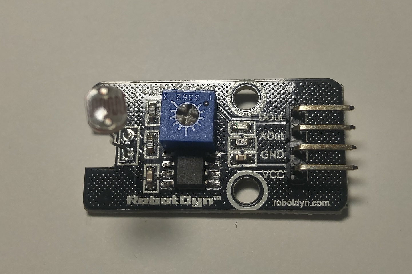 - Works just like a photoresistor with an analog signal, but it also has a digital output